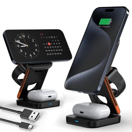 Chargeur sans fil portable et pliable 3 en 1 Station d'accueil de charge rapide Support de charge magnétique pour téléphone iPhone, Samsung, Huawei, Google pixel, Honor, Tecno camon 40 et plus